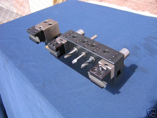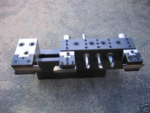 The tooling is apparently the same as Omniturn uses, which is a great idea as that tooling also was used by Hardinge and is readily available. An adapter like this would be much easier to build than the fancy tool slide I was designing and ought to work well for a lot of lathes that are CNC converted.