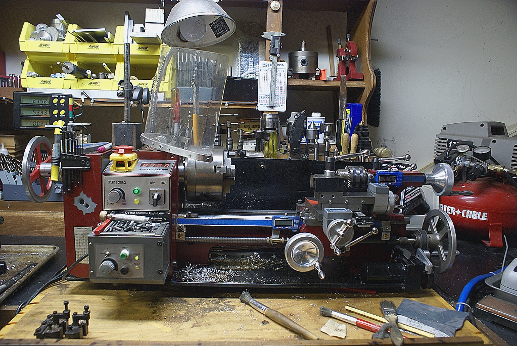 Nice shot of the DRO and feed motor. I notice a tailstock locking lever peeking out too!