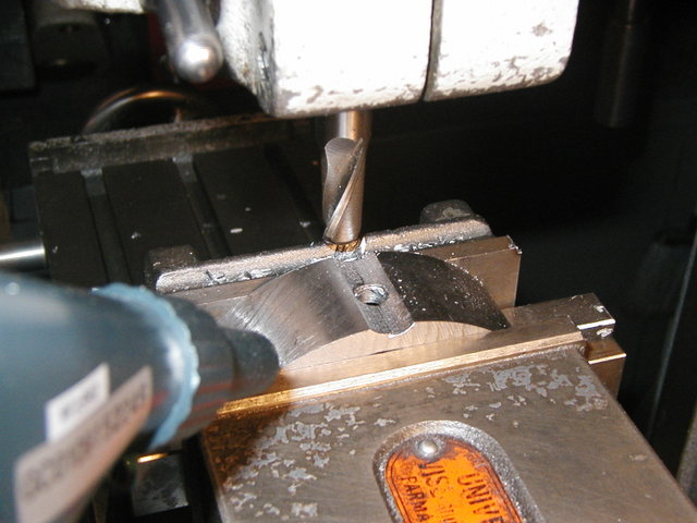 In an exchange with the Fidgiting Wigitmaster, one of my generous mentors, he suggest finding a way to do it without a tilting table or sine vise. In fact, his view is that 45 degrees is too much angle for a sine vise. Alternatives include tramming the milling spindle to 45 degrees if it tilts (mine does) and using a cutter that will cut the relief while the table is flat on the mill table. The latter appeals to me most. There are a couple of possibilities. Widgit suggests you can use your tool grinder to alter a normal endmill by grinding the end to a 45 degree angle. This may be a change for me to use the drill sharpening fixture I bought some time ago:
