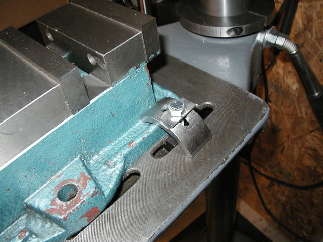 I partially tightened the clamps, zeroed the indicator by moving the Y-axis (I prefer that to touching the indicator), and low and behold it was perfect! I was using an indicator accurate to 0.0005" and the needle didn't budge left to right for the entire length of the block! "This can't be right!" sez I. I fiddled with the indicator to be sure it was in contact, and then I went to the trouble of mounting my other indicator thinking this one was damaged. Perfect! The block was exactly square just the way I had laid it down.