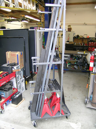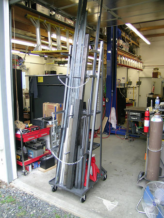 I need a stock rack for long stock. I love this rolling rack with shelves and safety chains...