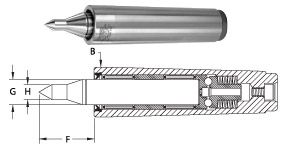 I've got my tool hung way out and angled to clear the center, but I still can't really cover the whole length of the workpiece. I wound up not using the live center. No harm done, but I did have to be extra careful and take lighter cuts and I did screw up a couple parts while I was working out what I could do. Along comes my latest Enco catalog with something they're calling a Royal "CNC" Live Center on sale: