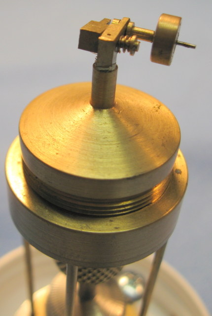 This little wobbler, courtesy of HMEM board, was apparently built from plans in the book, "Steam and Stirling Engines." It is from the article, "Thimble Power Plant", by James Senft. It has a 1/16" bore and stroke. The flywheel is 1/4" diameter the crankshaft is .020". It runs at about 20,000 rpm because it is so small.