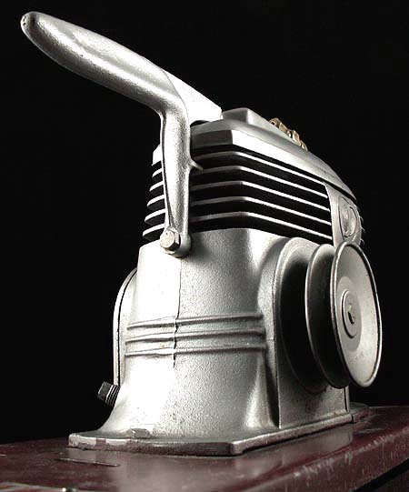 I recently came across photos of this little compressor on a completed unrelated search. I've always loved the Art Deco/Machine Age style of design. Streamliner steam engines and other cool design motifs were common in the era. The ideal of this design style was to create shapes that looked as though they were moving very fast even when they were standing still. Hence they were "streamlined" and filled with sinous curves.