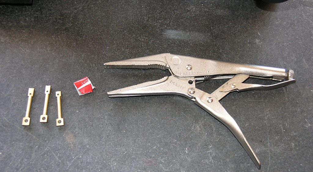 I'm going to use that little bit of aluminum soda can to make sure I don't damage my con rods holding them with the vise grips....
