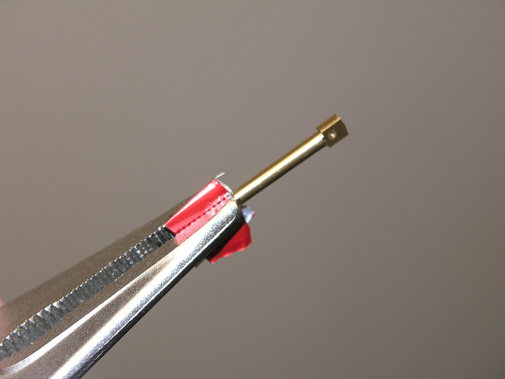 We just clamp the big end using the soda can as protection from the vise grip's serrated jaws...