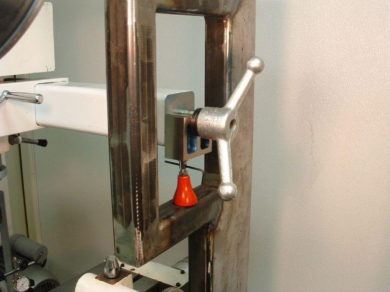 Let me try to explain what's going on here. This fellow is using the little machinist's jack together with the big square frame he welded up to make fine adjustments to the tram of his mill head. The jack gives him a fine adjustment screw for the task. I thought this was an interesting alternative to hammer thumping while the locking screws are half tightened, which is how I learned to do it. Perhaps one could fabricate a more elegant approach using a fine screw secured to the head and the mill table. Imagine a sort of turnbuckle arrangement. OTOH, maybe it would just be very inconvenient compared to the hammer. I'll have to give it some thought.