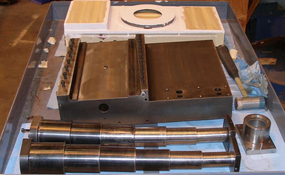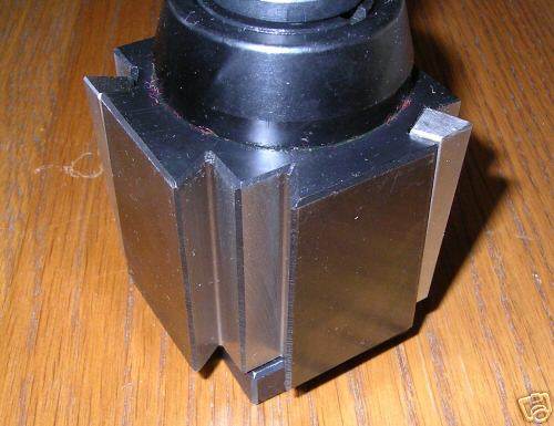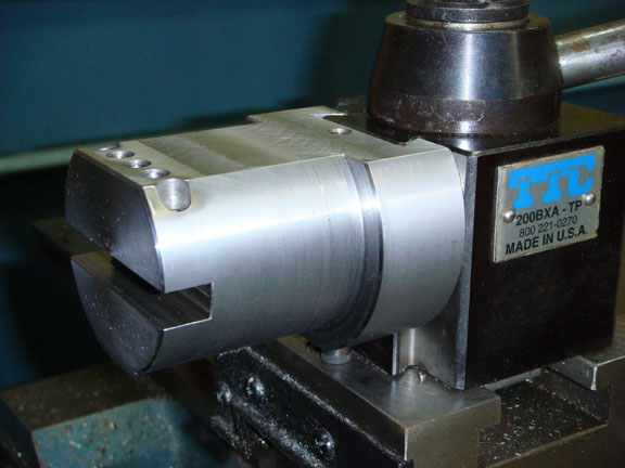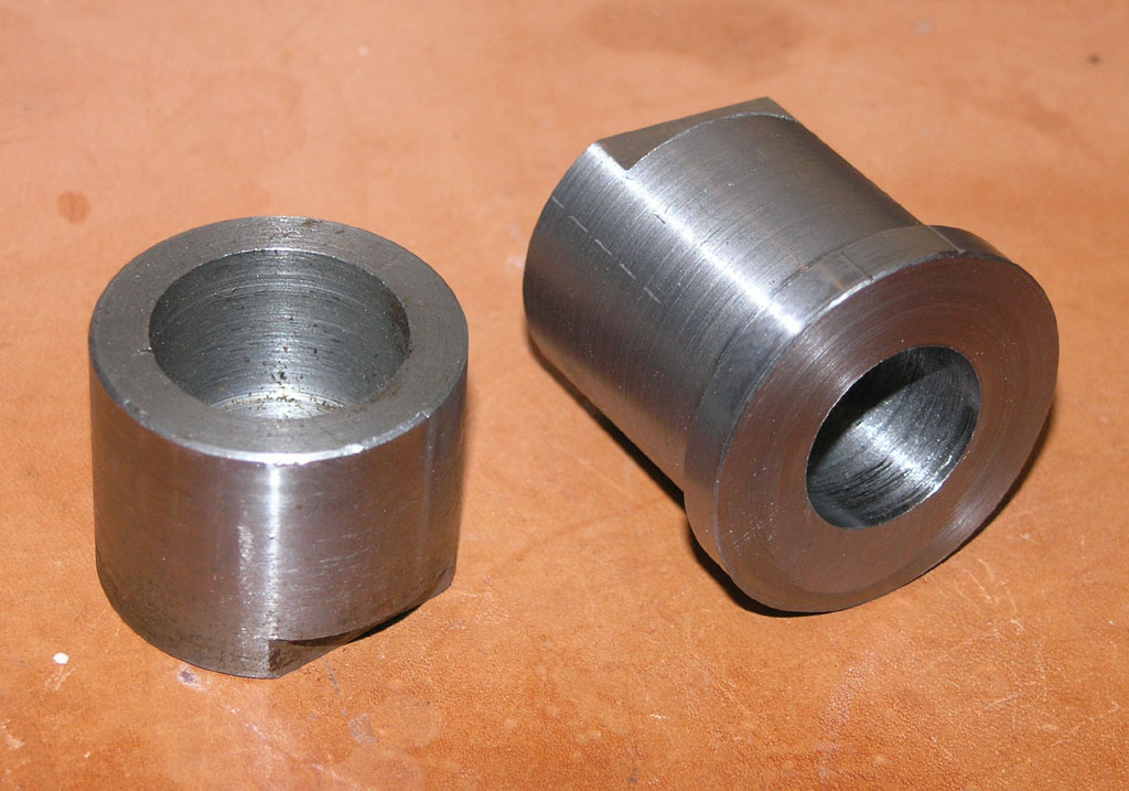 This handy little "Guzinta" will be used in a second. For now, note it has two bolt holes, and two dowel holes in the stepped end for precision alignment...