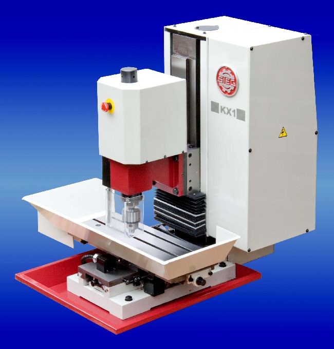 Thanks to John Stevenson who participated in the development testing for this machine for posting a picture of one. He says it differs from the X1 in having a fixed and heavier column, ballscrews on all axes, and limit switches. Power is a 3/4 HP 3 phase brushless motor under full CNC control with speeds from 100 to 6,300. You gotta love how it's set up at least to handle mist coolant. This is one very professional looking machine. I bet they'll sell quite a few, and this is just the beginning of turnkey hobby CNC from China. Apparently Sieg has a purpose-built factory just for this class of machine.