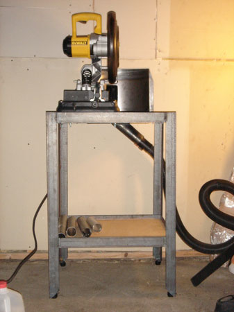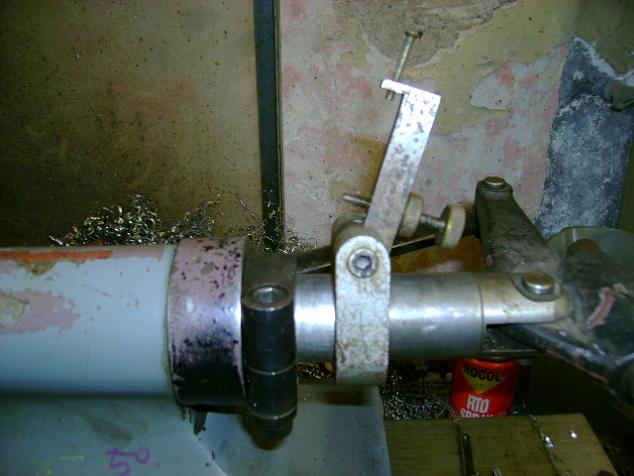 That massive rod will serve as a Y-Axis rail. Widgitmaster is cutting the rod to precision length. Note the big shop made stop on the table at the far end...