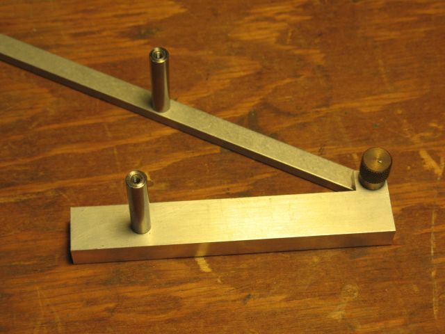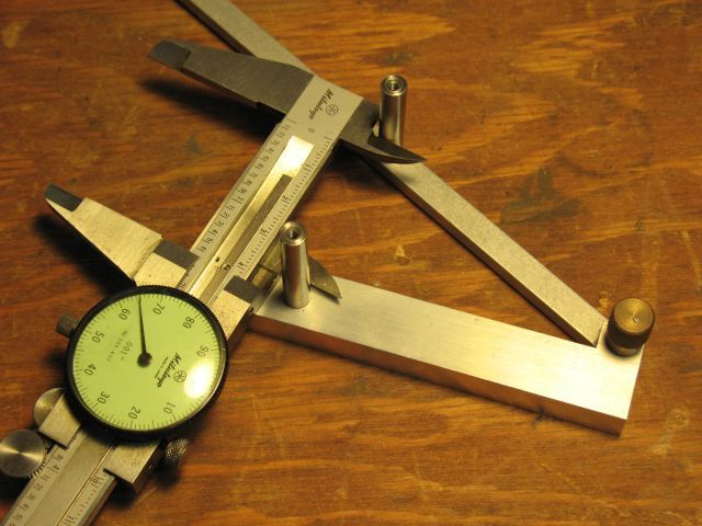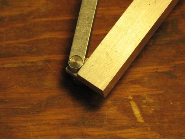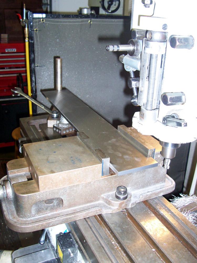 So how does the height gage fit in? The mill cuts are precision cuts, done with a 1/2" end mill. Widget plases a 1/2" pin in the crook where the end of the mill cut is and then uses his height gage to see what that height is. Now for the other end (on the left), he can use the jack screw until the same measurement is reached on the height gage. Now he knows the piece is clamped on squarely. BTW, there are two uprights clamped together so they'll be the same size!