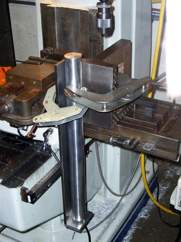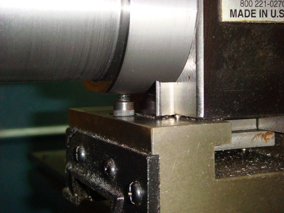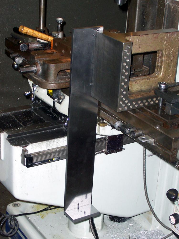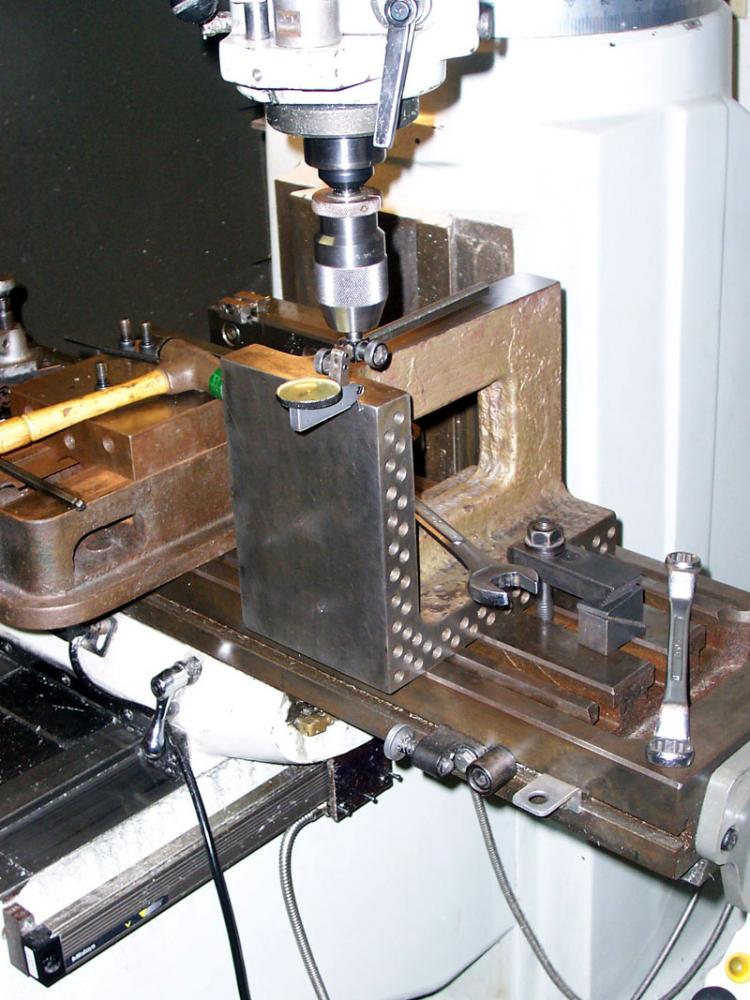 Now dial the face of the big angle block in square. It's hangling over the edge for clearance, Clarence...