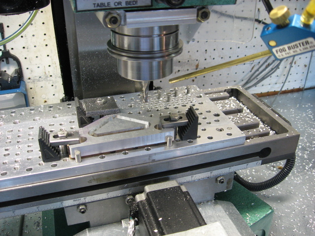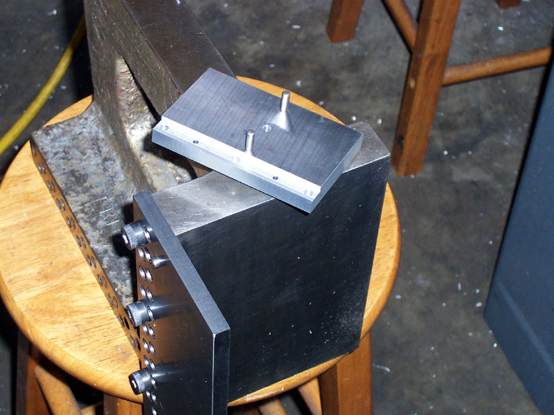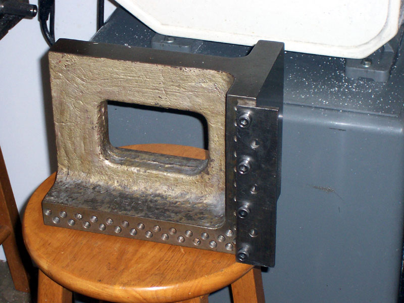 Note the hole pattern in this big ole knee block. There's a little piece of Widgit tooling bolted to the side there already...
