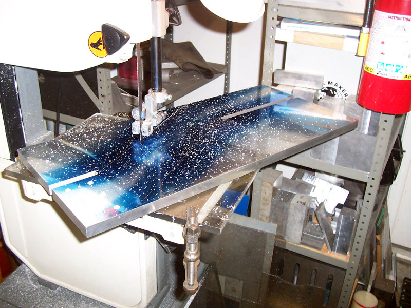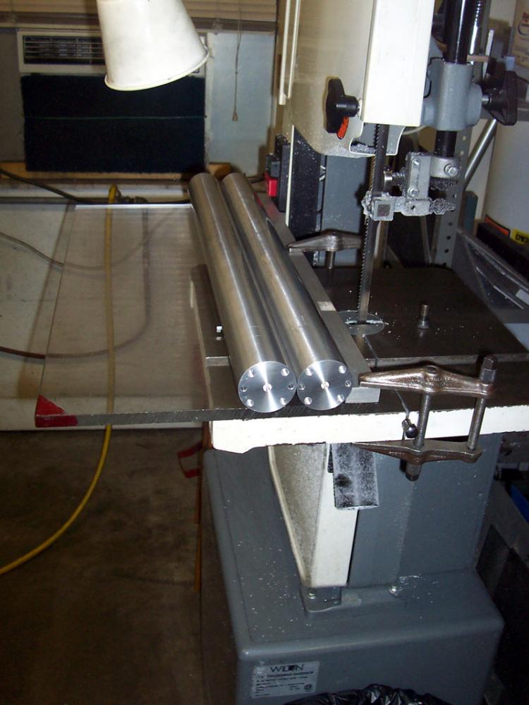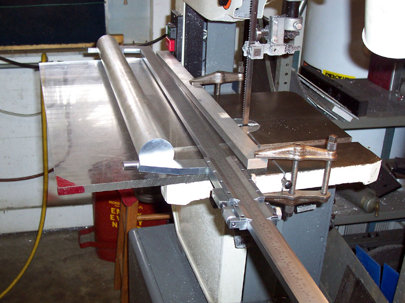 Next, the Big Caliper of Doom is used to check the length is correct. A plate clamped to the bandsaw with a fence provides a handy additional work surface...