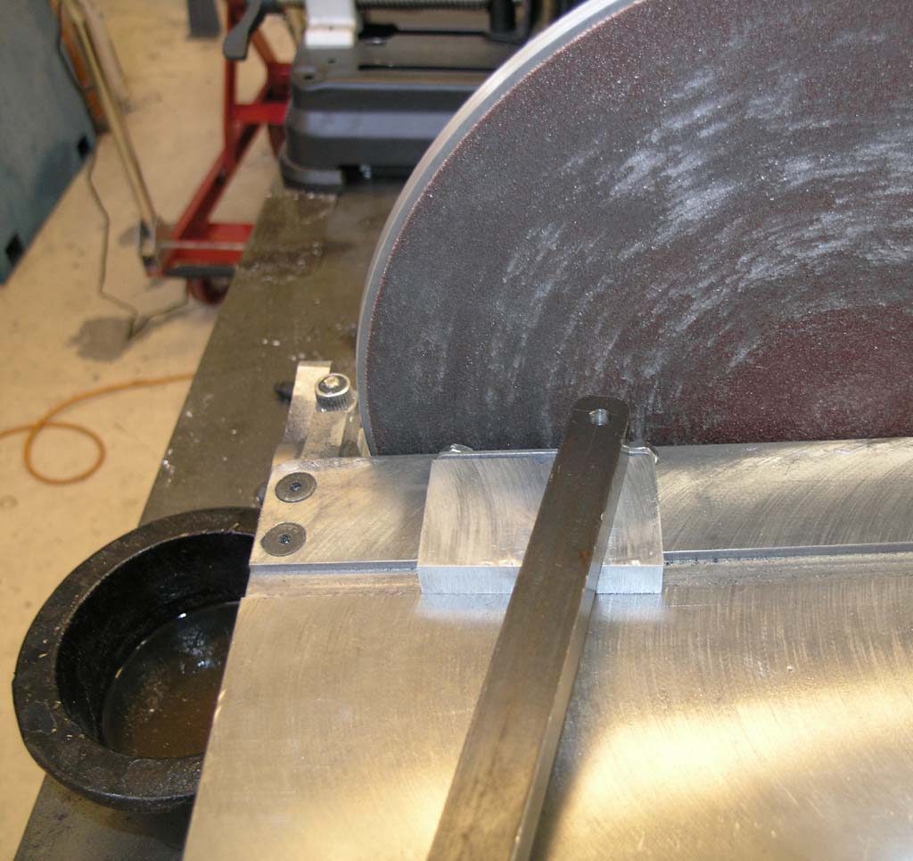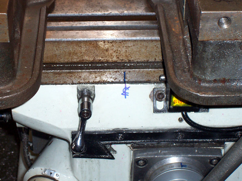 There's a closer look at that table stop. He's got a machinist's jack under there too. Widget likes to use closed end wrenches as removable handles on his tooling and mill I've noticed. This plate is going to be part of a fixture he is building...