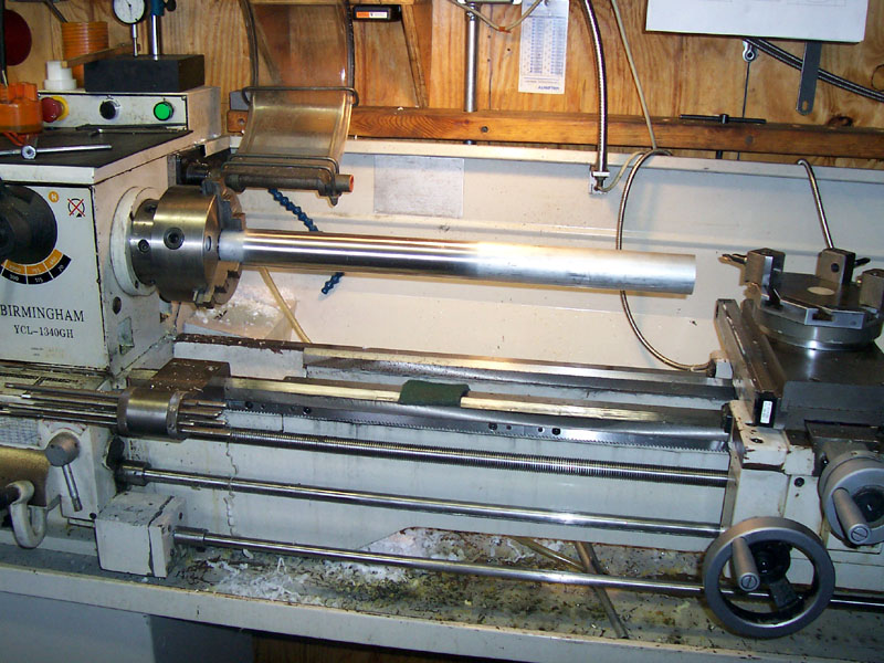 Here he is using his lathe to give it a polishing with Scotchbrite pads...