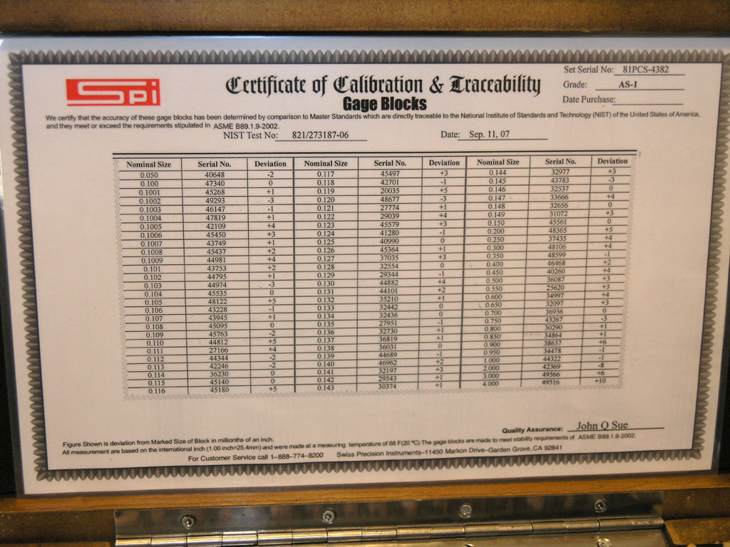 The certificate of traceability with a NIST traceable test certificate is the winning indicator of quality on this set...
