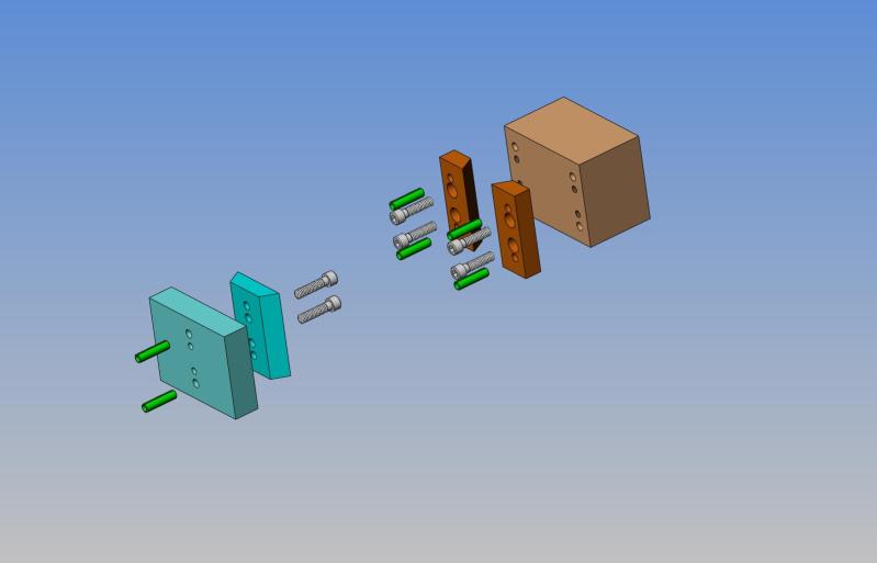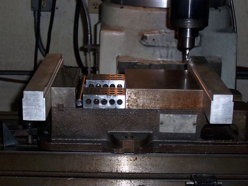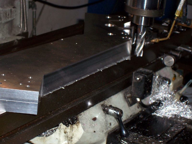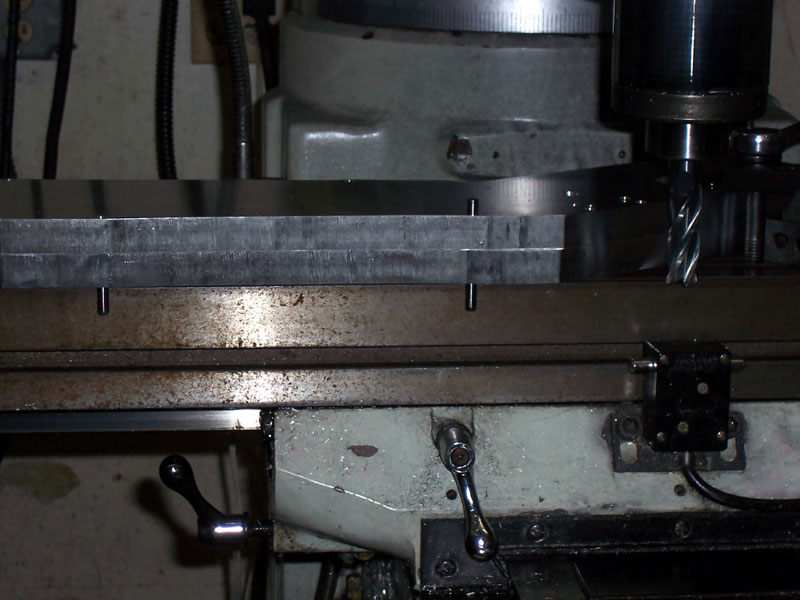 Widget had been thinking ahead. He has two holes for dowel pins that in the material that will be milled away. The dowel pins let him line up the milling pass perfectly because they align the workpieces against the square mill table edge...