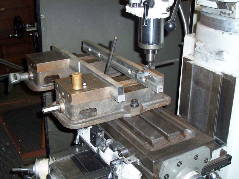 Lots of goodness here: Outside vise jaws will be used to clamp a big workpiece. Not only are the outside, but they are wider than the vise. Widget is milling a step into them to use instead of parallels (how will you get parallels in there anyway), and since the steps are milled, they're prefectly trammed. Lastly, check the 1-2-3 blocks and drill rod. Drill rod keeps from overconstraining the setup (i.e. makes it more accurate) and having them in there loads the vise as though there is a workpiece in there...
