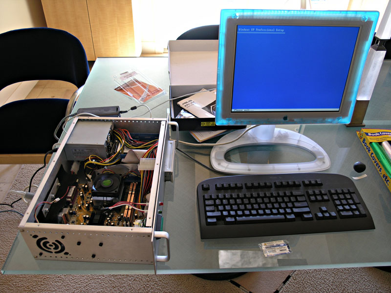It's a full on Athlon 64 system on a Micro-ATX motherboard. All the parts are brand new, and you can build a system like this for about $400 if you shop carefully, not including monitor, keyboard, or mouse.