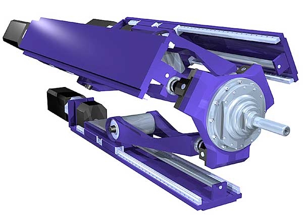 It uses 3 sets of linear rails in a triangular configuration with pivots. I wonder if Mach 3 can handle the kinematic formulas for this kind of thing? Woo Hoo!
