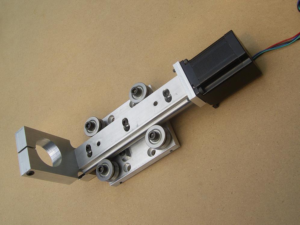 A closer view of the table. You can see the UHMW pads. Motors are NEMA 17--tiny!