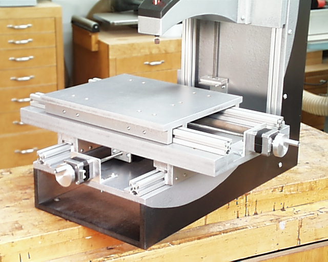 I just did it by eyeball and one end hung up on the handwheel so I couldn't do things as symmetrical as I would have liked, but all in all it turned out tolerably well. I think I'm going to like that table a whole lot too! At this stage I think I am within spitting distance of being ready to assemble the PC enclosure. Just a few more holes to drill, but hopefully I can get the PC up and running this weekend. That would be a satisfying step forward on the project.