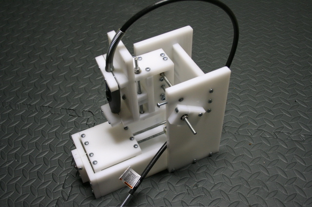 Extremely tiny--not sure what it could even be used for. Uses stepper motors salvaged from printers and a Dremel cable drive spindle...