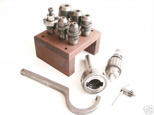 I'm not sure how the holders get locked into the chuck, but they sure are cool. The seller didn't know much about them, but thought they might have the brand name "Kwik Switch". This set sold for about $320, and I kick myself for not stepping up to take them. Oh well. I did purchase plans to make a powered drawbar for my mill from a butterfly impact wrench. That would also speed tool changes up considerably.