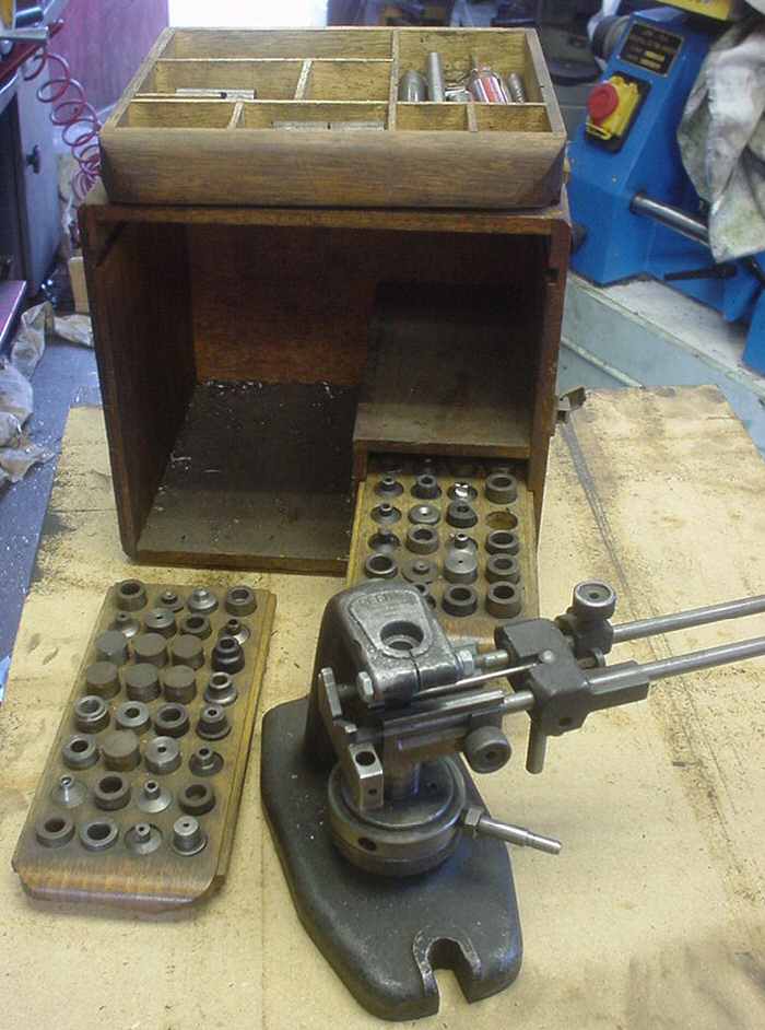 These are handy when cross drilling shafts. You'll note it is build around a captive V-Block, and there is a gizmo to hold a drill bushing at the top that is on a couple of sliding rods. This one is store bought, but it seems like an ideal quick project for a machinist to build one.