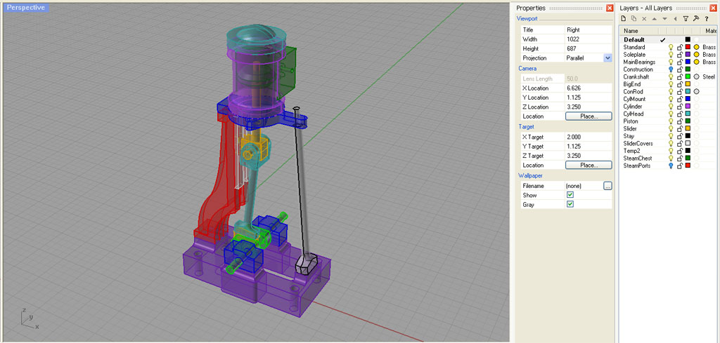 Here I have turned off every layer but the cylinder so I can see and manipulate it easily without clutter or damaging the other parts. You can see the steeply angled steam ports that I wnat to get rid of for a better idea.