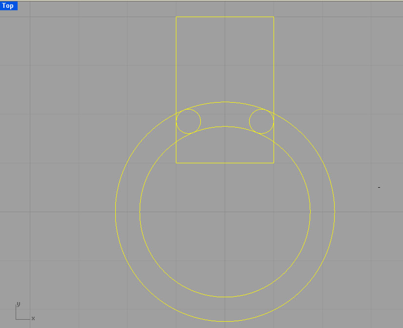 Here are all the construction lines. Note that Rhino made it easy for me to select the box and the two big circles and it figured out how to exactly postiion the small circles for me.