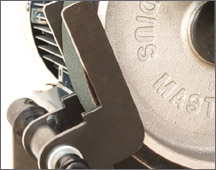 It has 5 interchangeable contact wheels that can be indexed into position--these 3 plus the other 2 corners of the triangle have larger wheels...